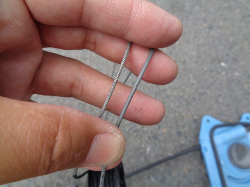 左のワイヤーの被覆が剥けてきてますね!ズル剥けです!