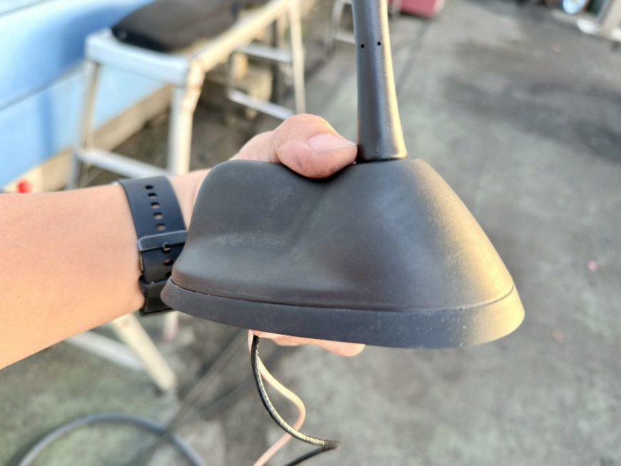 作業は室内から天張りを下ろし、アンテナユニットを取り外したら、ユニットの底板を外してゴムモールを挟み込むように組付けていきます。