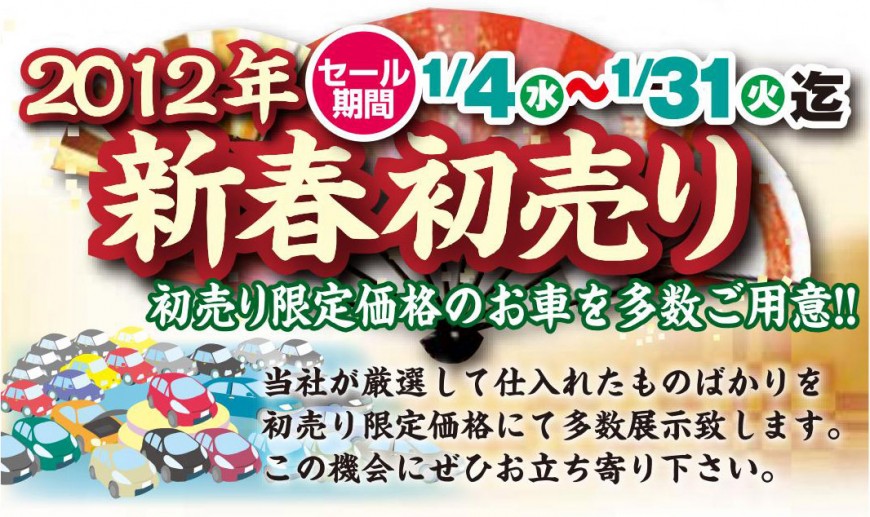 2012年新春初売りセール+ お年玉キャンペーンのお知らせ お年玉プレゼントキャンペーン 来店して豪華賞品を当てよう!!店頭の応募用紙に希望商品を選んで記入するだけで応募完了! 42型3DフルハイビジョンTV・・・5名様 デジタルコンパクト一眼レフカメラ・・・10名様 iRobot ルンバ・・・15名様 PlayStation3 & torne(トルネ)・・・20名様 全国百貨店共通商品券・・・445名様 抽選の結果は、商品の発送をもって代えさせて頂きます。 PDFダウンロード 担当:ハラ自動車