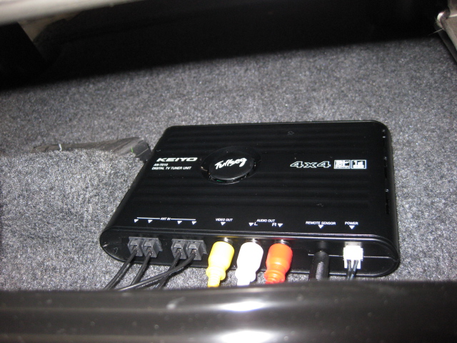 地デジチューナーは助手席シート下に取り付け!!こちらも配線を隠すのにちょっと手間が掛かりますが