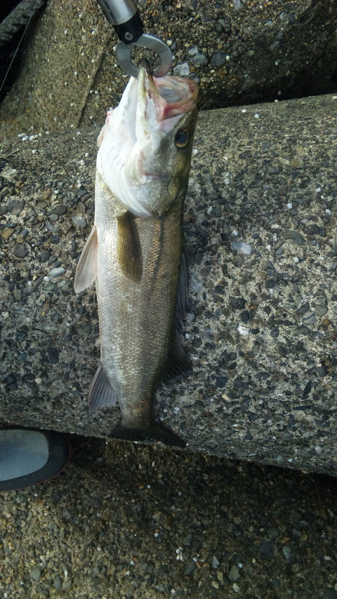 今にも雨が降り出しそうな空模様…気温も低めだったから合羽着てやるか~でポイントまで海面見ながらテクテク歩いてると、所々ライズが!シーバスか!どうせ